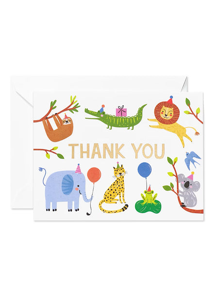 This adorable set of thank-you cards is perfect for sharing thanks to many people after a baby shower, birthday or any special event! The cards features cute party animals around a gold thank you. Each card is blank inside so you can write a personal message. This blank card pack of 10 cards and 10 envelopes provides a great value. A Cute way to express gratitude for kind gestures or gifts, you’ll be glad to have these stationery cards at your fingertips!