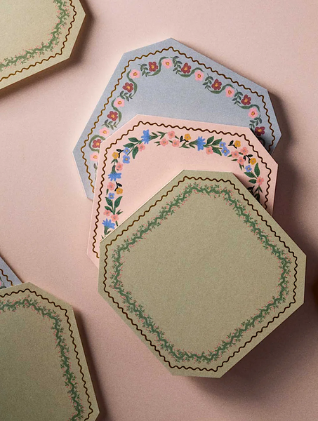 Jot down reminders or leave a sweet note with this set of three floral-bordered notepads, with metallic gold details and 50 tear-off sheets each.